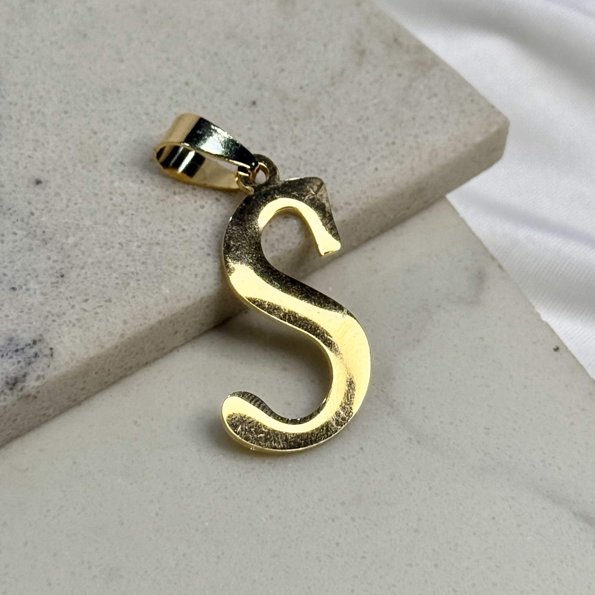 Dije de acero dorado en forma de inicial con textura. Consultá por la tuya!..
