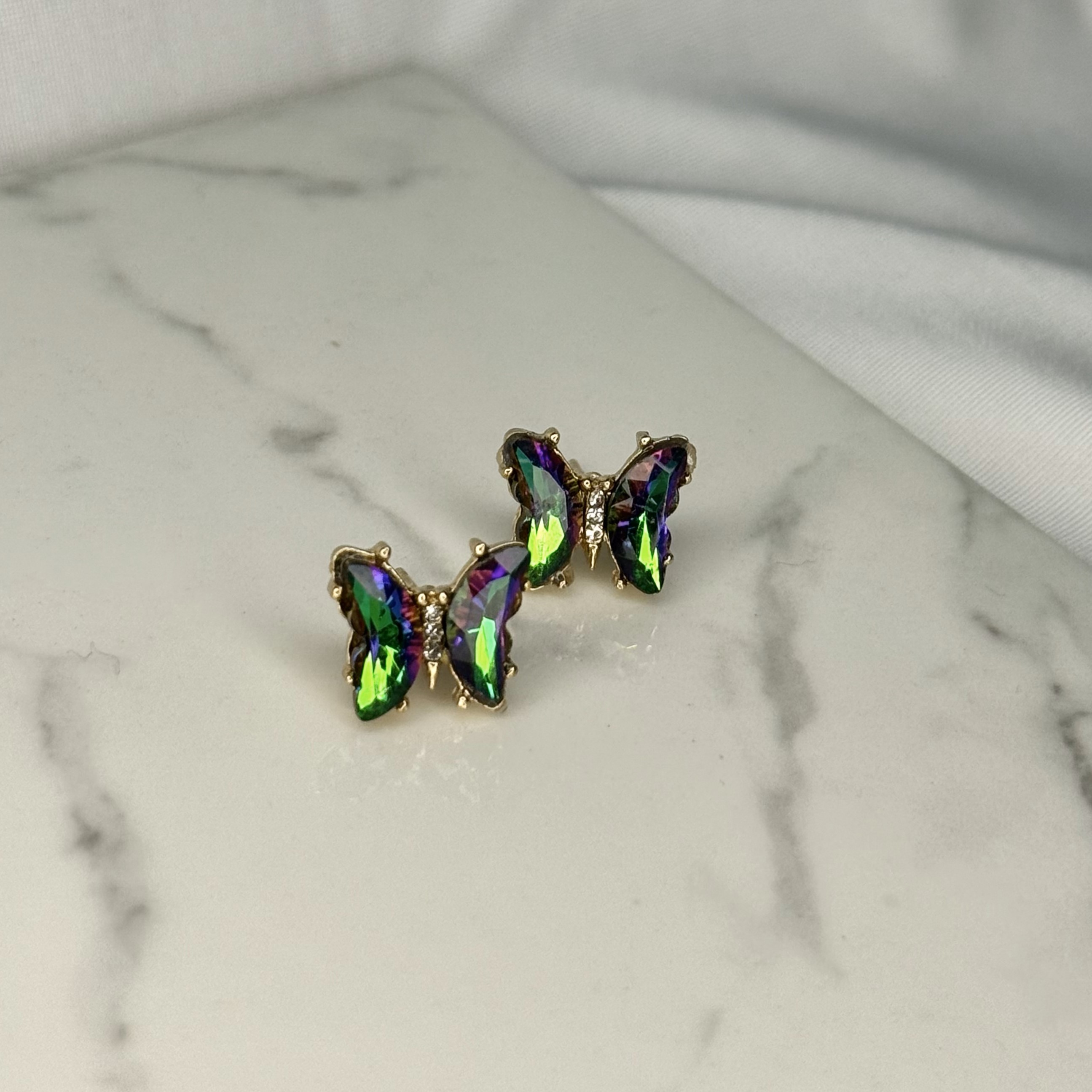 Aros de acero dorado en forma de mariposas pequeñas con apliques de micropave...