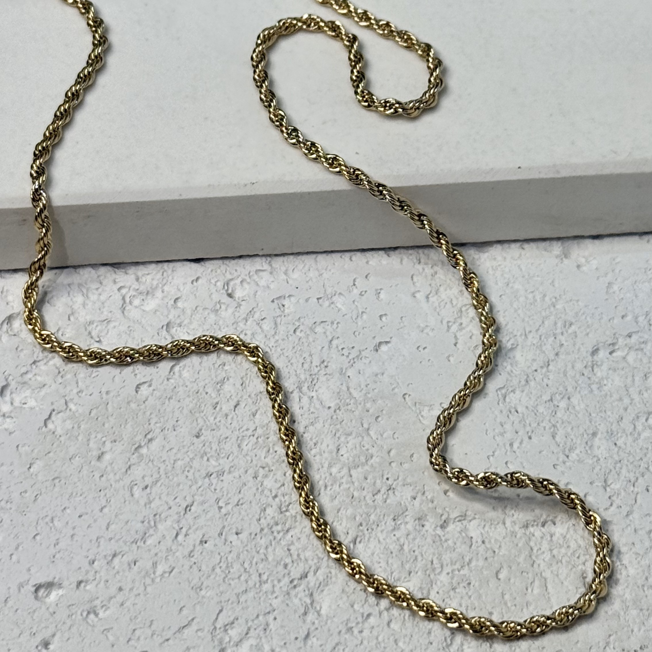 Collar de acero dorado estilo cadena entrelazada.50cm..